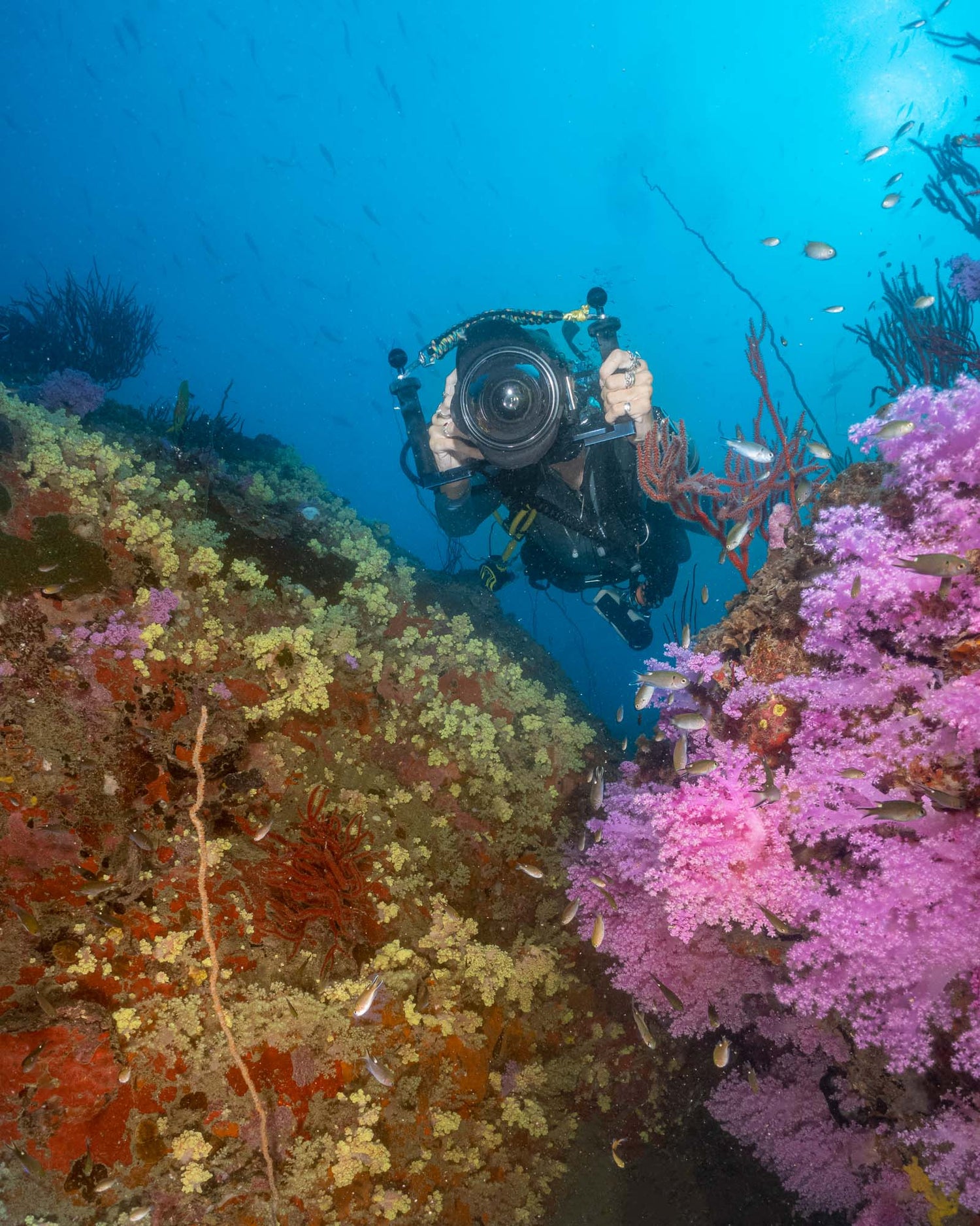 This four day photography course is perfect for those looking to dive into the world of underwater photography, or for keen photographers wanting to further develop their skills shooting images in the marine environment. Following daily, morning classroom sessions that take a detailed look into the art of underwater photography techniques, each day includes two dives where students will practice skills aimed at mastering composition, lighting and exposure for a variety of different underwater image types. Students will gain experience using underwater strobes and different lenses, allowing them to practice shooting a range of shots within macro, portrait, close-focus wide angle, and large scene environments. Each aftemoon will include an image review session - a key element for building on skills for the following day, as well as detailed sessions on post-production editing, using the most up to date software. All photography equipment is included for the duration of the course, making this course accessible to all.